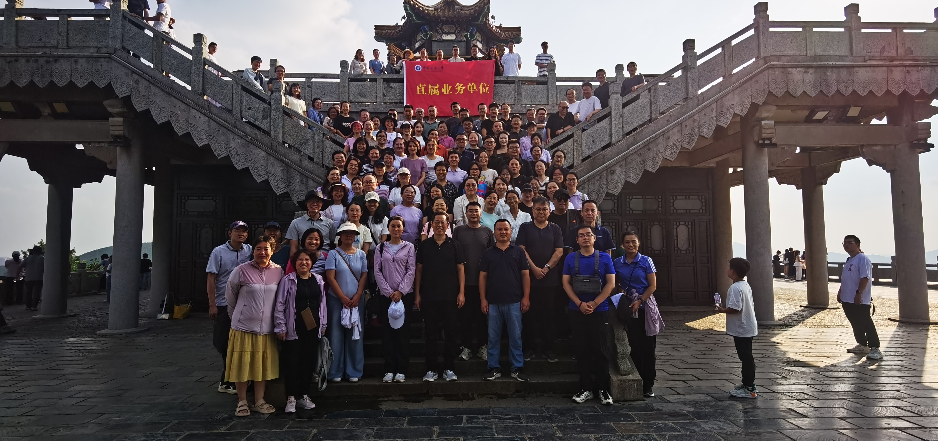 登顶观景台后,大家极目远眺,城市风光尽收眼底。大家不禁感慨道:“教育如登山,需脚踏实地,更需胸怀远志。”全体会员在此定格下珍贵的合影——镜头中,一张张笑脸与秋日暖阳交相辉映,展现出直属业务单位教职工团结奋进、阳光自信的精神风貌。