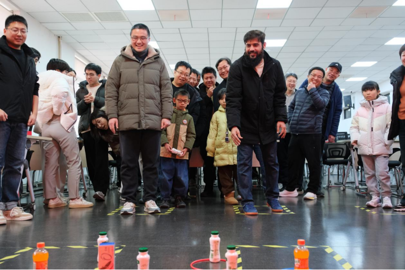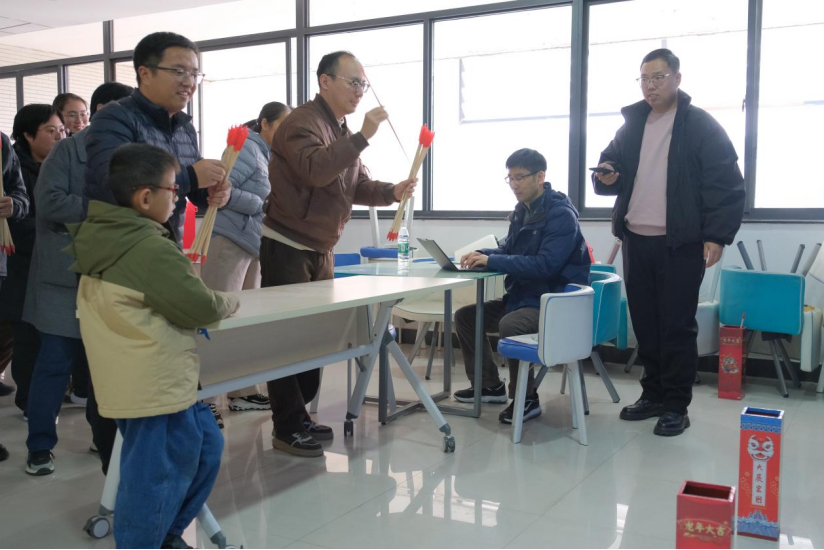 本次联欢会活动内容丰富多样,趣味横生。现场共设有口令抢水、蒙眼踏步、抢凳挑战、快速响应、投壶竞技、套圈有奖六个项目和抽奖环节。教职工们积极参与、热情高涨,现场气氛热烈而欢乐。