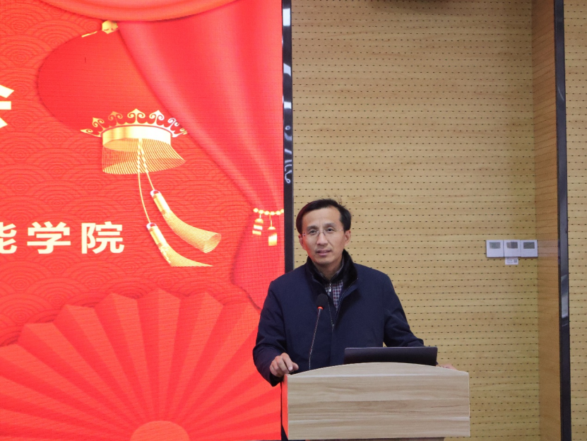学院党委书记周治国致新年贺词。他代表学院党政,向老师们致以最诚挚的节日问候和最美好的新年祝福,并总结了一年来我院在人才培养、教学科研、师资队伍、党建引领等方面取得的突出成绩。他强调,这些成绩的取得是大家一点一滴干出来的,是全院上下同心同德、奋力拼搏的结果。这背后,是老师们潜心教书、精心育人的汗水与智慧。在新的一年里,我们要持续巩固学院风清气正、干事创业的良好氛围,加强人文关怀,提升教职工的归属感、获得感与幸福感,携手共建温暖、卓越的学术共同体。希望全体教职工戮力同心,以更加饱满的热情、更加昂扬的斗志、更加务实的作风,共同谱写更加辉煌灿烂的新篇章!