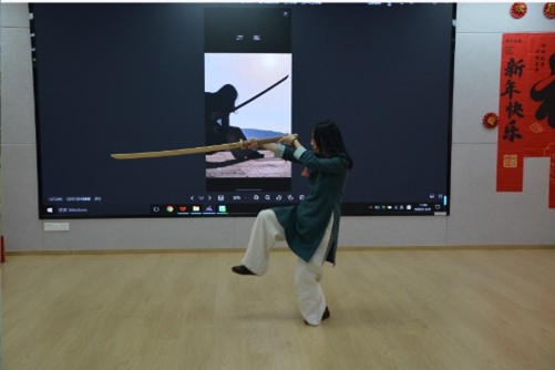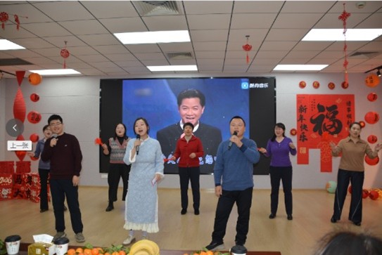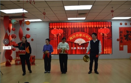 随后,茶话会进入轻松愉快的互动环节。馆员们自编自导自演了丰富多彩的节目,歌曲演唱温情脉脉,小品阵阵欢笑,吉他弹唱清新雅致,三句半语言精练、妙趣横生,道出了图书馆工作的日常与感悟,《苗刀》表演刚柔并济,展现了中华传统武术的独特魅力;舞蹈《青苹果乐园》活力四射,带领大家重温青春记忆,大家欢声笑语不断,充分展现了馆员们多才多艺、积极向上的精神风貌。现场氛围热烈而温馨,掌声、笑声此起彼伏,大家在欢乐的氛围中放松了身心,增进了彼此的感情。