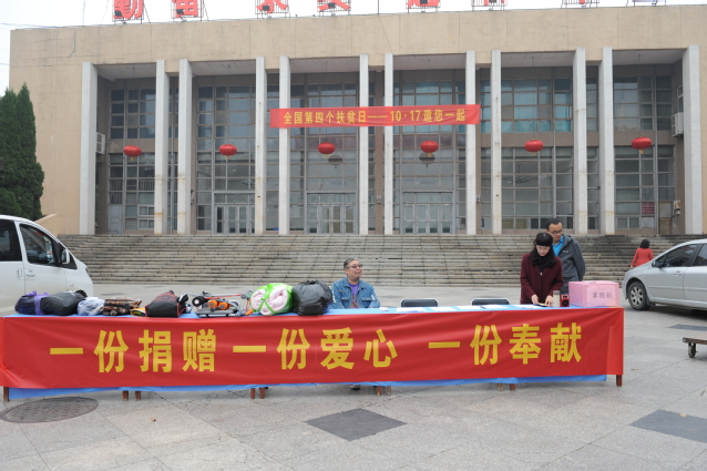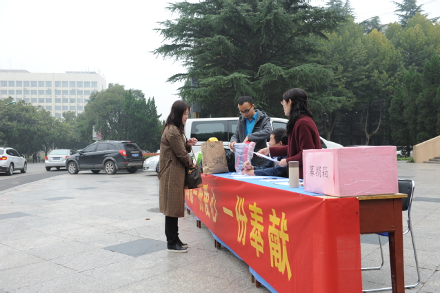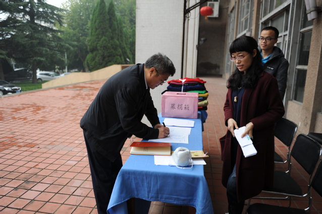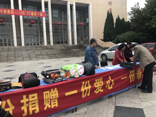 2017年10月17日是我国第四个扶贫日。17日当天,校工会在科学馆广场前开展“1017,邀您一起”扶贫募捐活动。虽然细雨淅沥,但是我校师生热情不减,纷纷慷慨解囊,踊跃捐款捐物。很多老师特意开车把提前打包好的文具、衣物等送到捐献活动现场,用实际行动奉献爱心。本次活动共募捐现金1680元,衣物109件,其余书籍、文具、玩具以及其他用品等80余件。